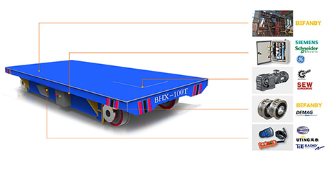 BHX:采用滑觸線將380V交流電源引入平車作為該平車的電力來源,其運(yùn)行頻率和使用時(shí)間不受束縛,適用于較長距離運(yùn)輸?shù)膱龊??;|線安裝平車底部或兩側(cè),會(huì)對其他車輛的過往造成影響,但因其臺(tái)面較低,卻是流水線生產(chǎn)的 輸送設(shè)備。