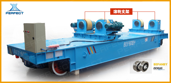 是一種特制的軌道運輸工具車,主要應(yīng)用于焊接、探傷、生產(chǎn)線等工況,該車型分為兩種,一種在臺面上加裝特制的滾輪支架,用來調(diào)節(jié)所運載物料角度,以方便對接或切割。 另一種是臺面上平鋪滾輪支架的電動平車,臺面均勻鋪設(shè)一層滾輪,由電機鏈條帶動滾輪傳動,運載物料。方便將物料從電動平車臺面?zhèn)魉偷綄拥墓の簧稀?