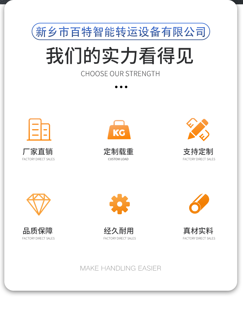 2.高效率:操作簡單,裝卸貨快捷,可大幅提高搬運效率,節省人力成本。