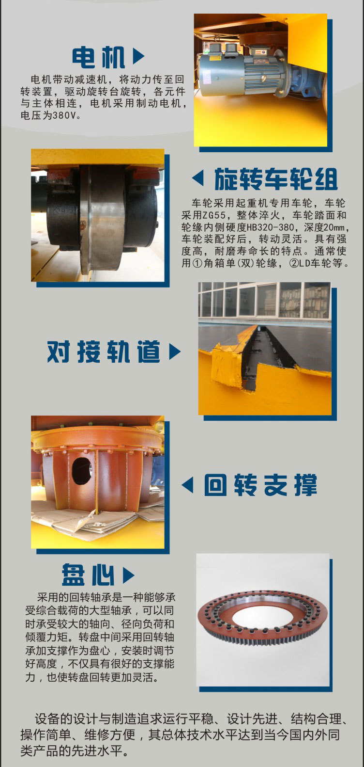 軌道轉(zhuǎn)盤車是車間鐵軌轉(zhuǎn)彎或者換軌道旋轉(zhuǎn)臺(tái)及用于對(duì)接換軌道的圓形電動(dòng)轉(zhuǎn)盤,可實(shí)現(xiàn)360度任何一個(gè)角度停止,也可以實(shí)現(xiàn)也可實(shí)現(xiàn)井型十字交叉運(yùn)行